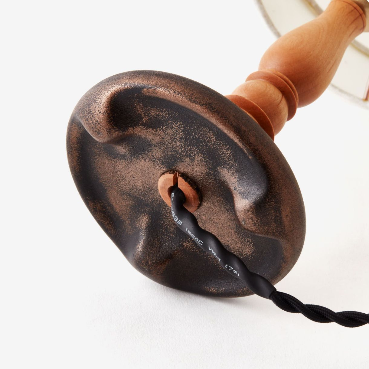 土台部分は、岩手県の伝統工芸である南部鉄器を採用しています。鉄製の土台によってもたらされた重量感は、照明自体の安定性を確保しています。土台の接地面は三本足となっており、配線をどこからでも逃がせる設計になっています。ちり、つち、くるみ、三種類の照明ごとに配色を変えることで、安定性と美しさを両立したデザインに仕上げています。