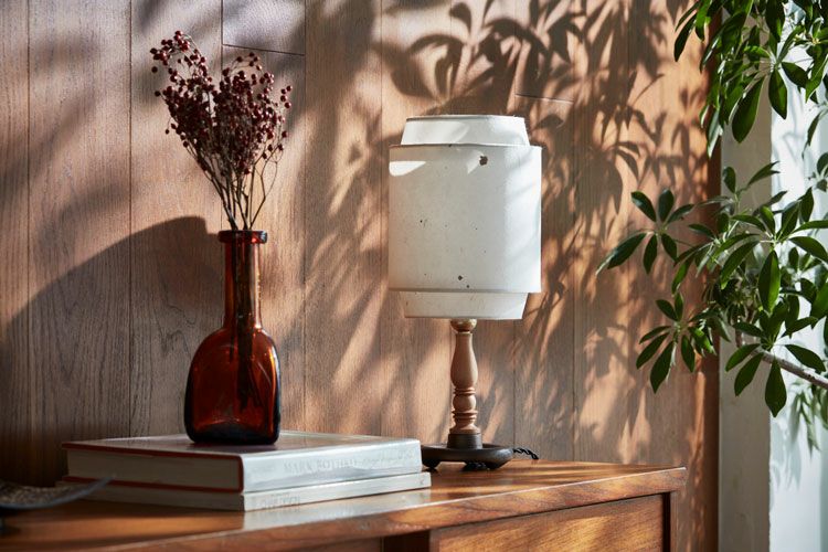 特徴的な二重構造のシェードはプロダクト全体のバランスを整え、明かりをつけた際に和紙の風合いがより生かされる形状となっています。