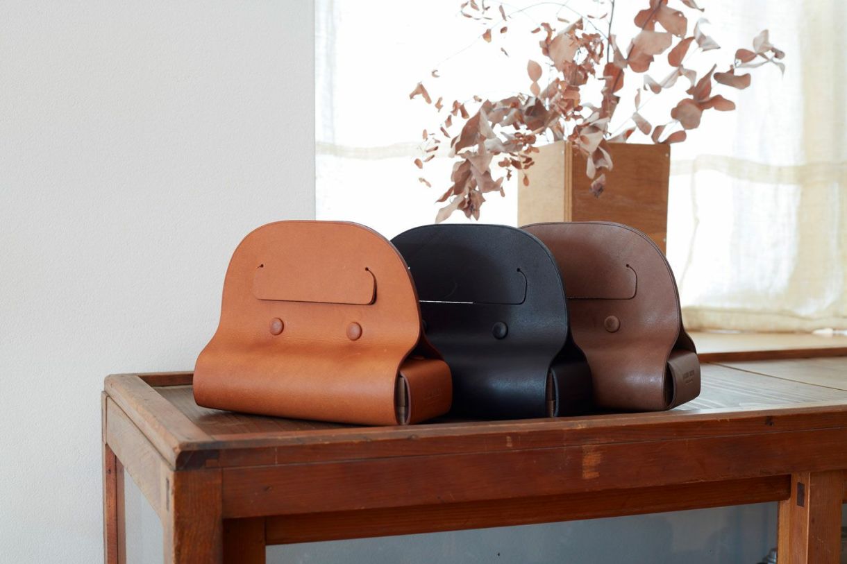 持ち手部分のレザーをくり抜かずに残すことで安定性が保っています。