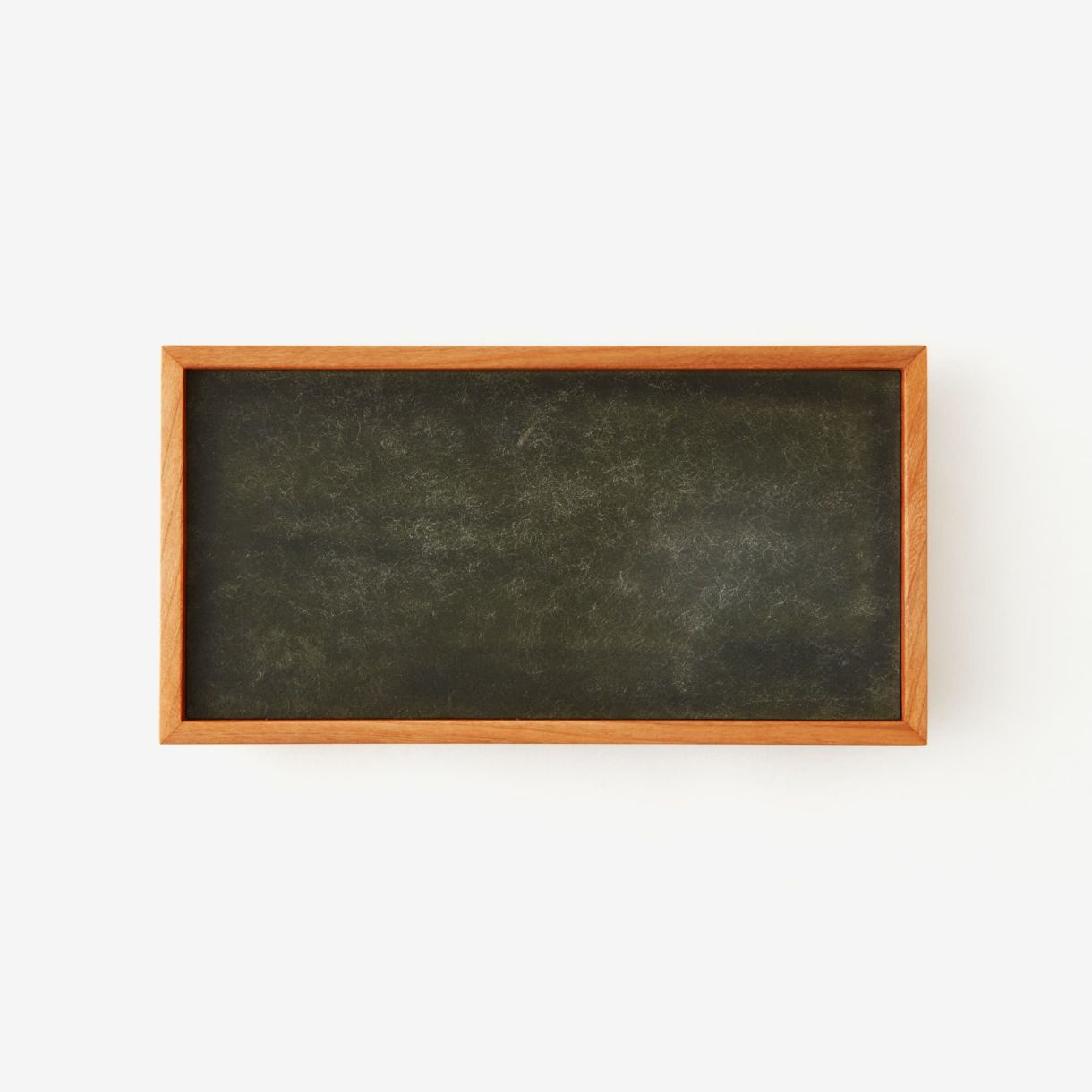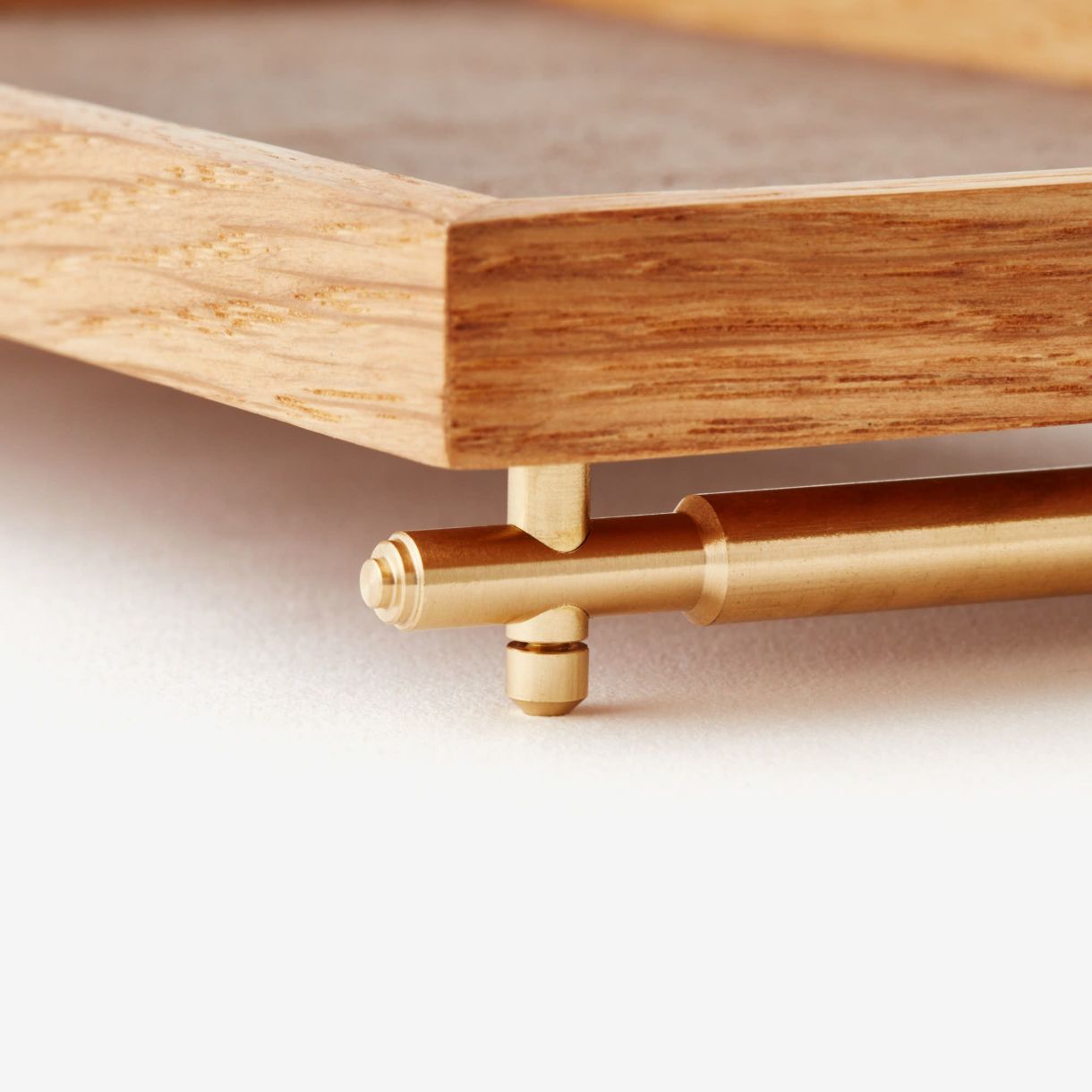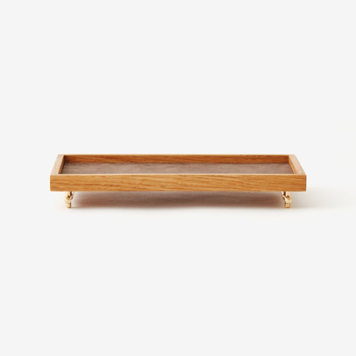ウッド×レザー×真鍮の素材の掛け合わせが美しいトレーです。
