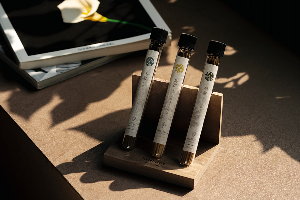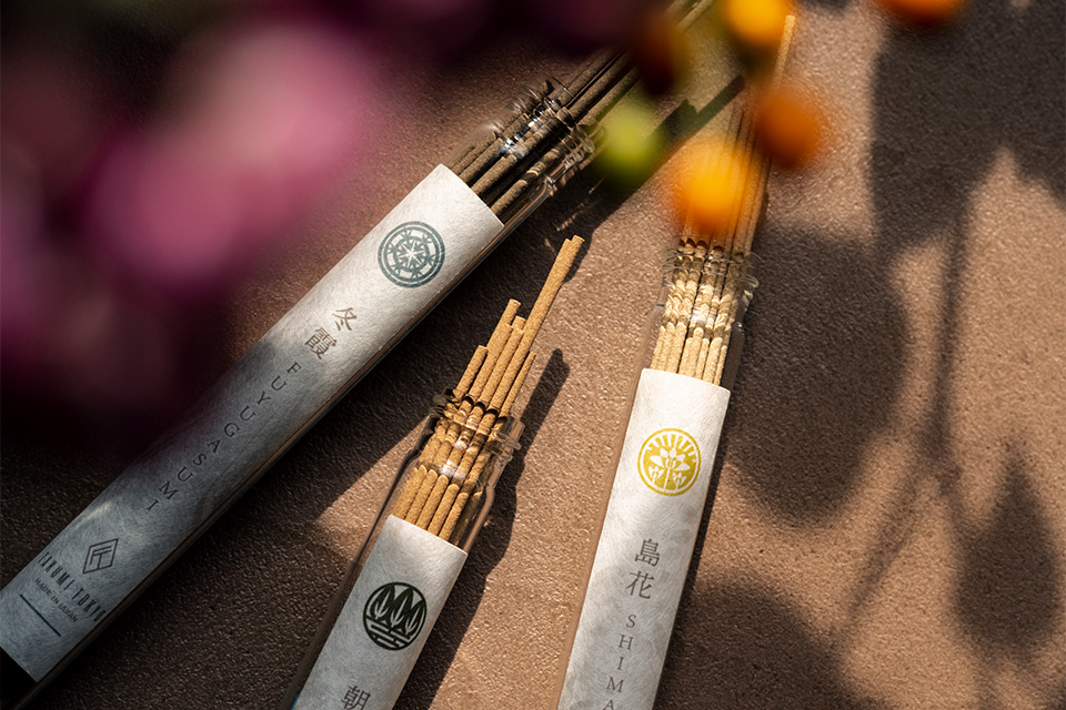 世界各地から取り寄せた香料をブレンドして造られた「朝霧」「島花」「冬霞」の三種類をお楽しみ頂けます。